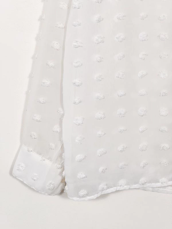 Camisa holgada de gasa plumetí. Cuello camisero. Mangas largas. Botones cristal en beige. Costuras a tono. Medidas - Ancho de hombros: 50 cm. Contorno de pecho: 106 cm. Largo total: 65 cm.