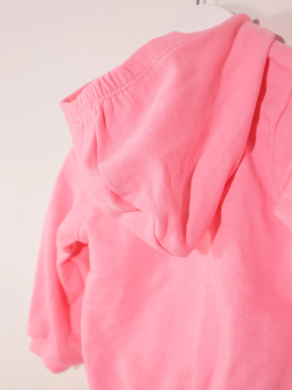 Campera con capucha de algodón rústico. Manga larga. Cierre a tono. Terminación en cintura con elástico. Medidas - Ancho de hombros: 24 cm. Contorno de pecho: 56 cm. Largo total: 31 cm.