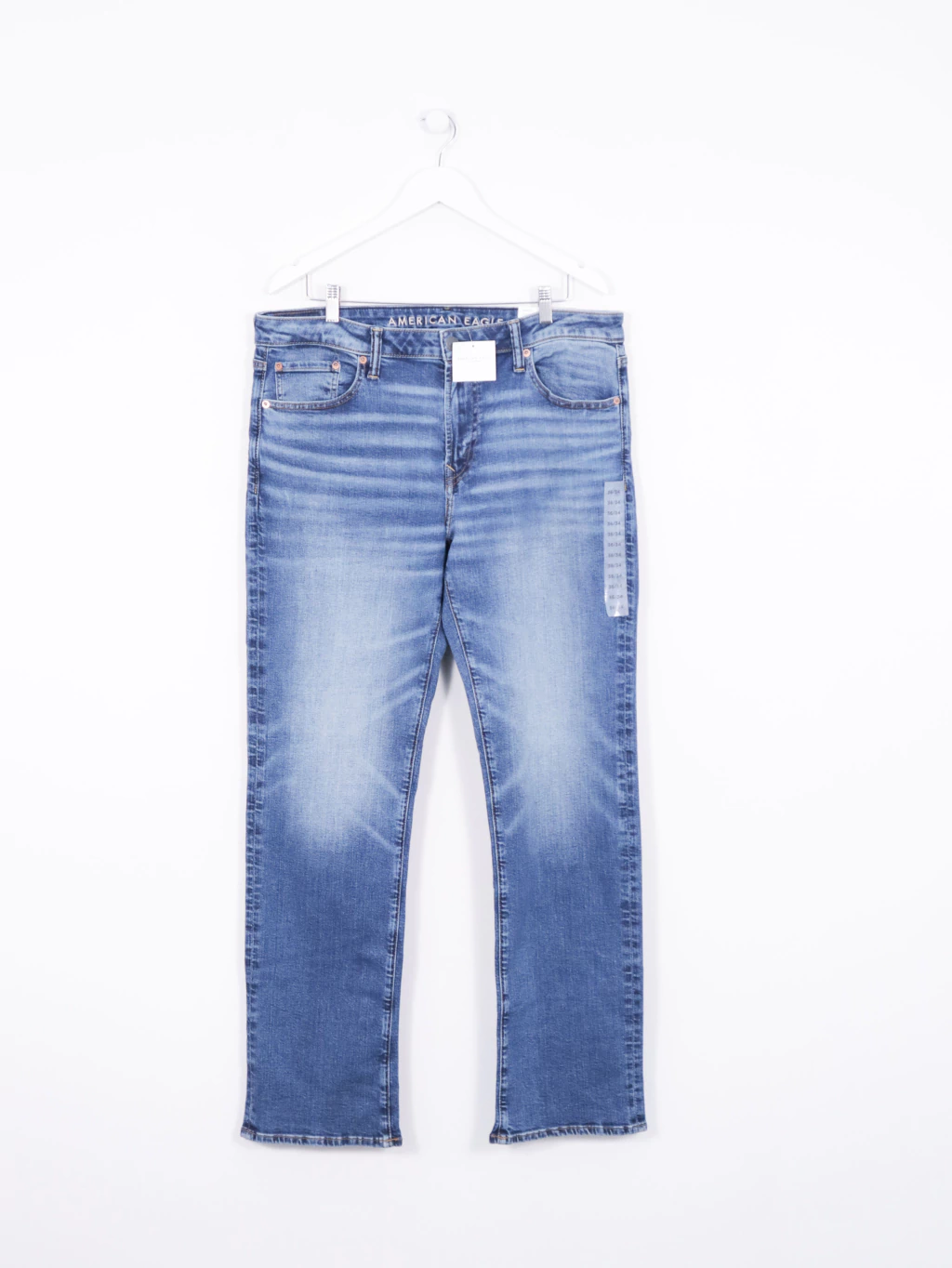 Jean recto de textil elastizado. Efecto gastado. Cinco bolsillos. Medidas - Contorno de cintura: 90 cm. Contorno de cadera: 110 cm. Largo total: 110 cm.
