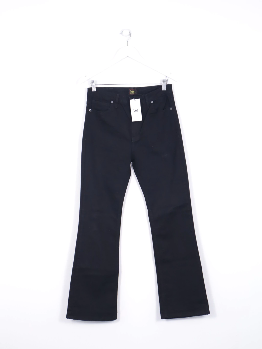 Jean de corte flare tiro alto. Cinco bolsillos. Medidas - Contorno de cintura: 72 cm. Contorno de cadera: 92 cm. Largo total: 107 cm.
