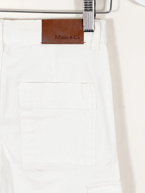 Pantalón estilo wide leg de gabardina elastizado. Tiro alto. Bolsillos cargo. Medidas - Contorno de cintura: 60 cm. Contorno de cadera: 80 cm. Largo total: 66 cm.