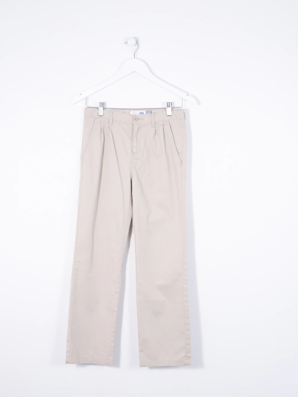 Pantalón de vestir de gabardina. Tono marón claro. Tiro medio. Cintura con botón y cierre. Cuatro bolsillos. Costuras a tono. Medidas - Contorno de cintura: 68 cm. Contorno de cadera: 86 cm. Largo total: 90 cm.
