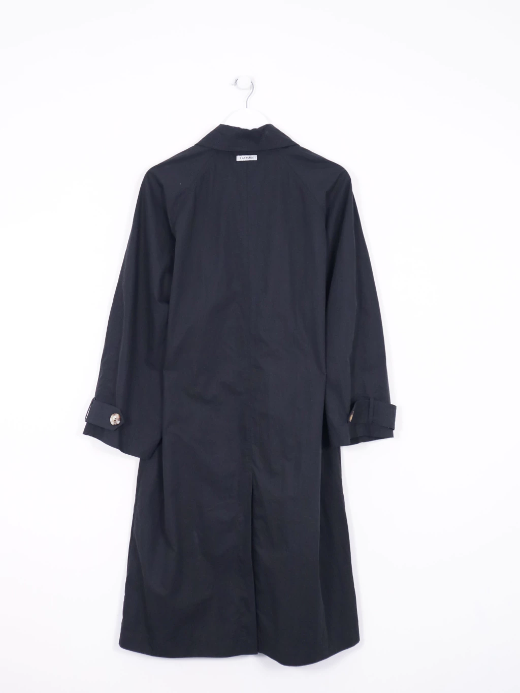 Piloto holgado de algodón. Cuello camisero. Mangas largas. Dos bolsillos con solapa. Botones marmolados en beige. Costuras a tono. Medidas - Ancho de hombros: 53 cm. Contorno de pecho: 106 cm. Contorno de cintura: 112 cm. Contorno de cadera: 124 cm. Largo total: 110 cm.