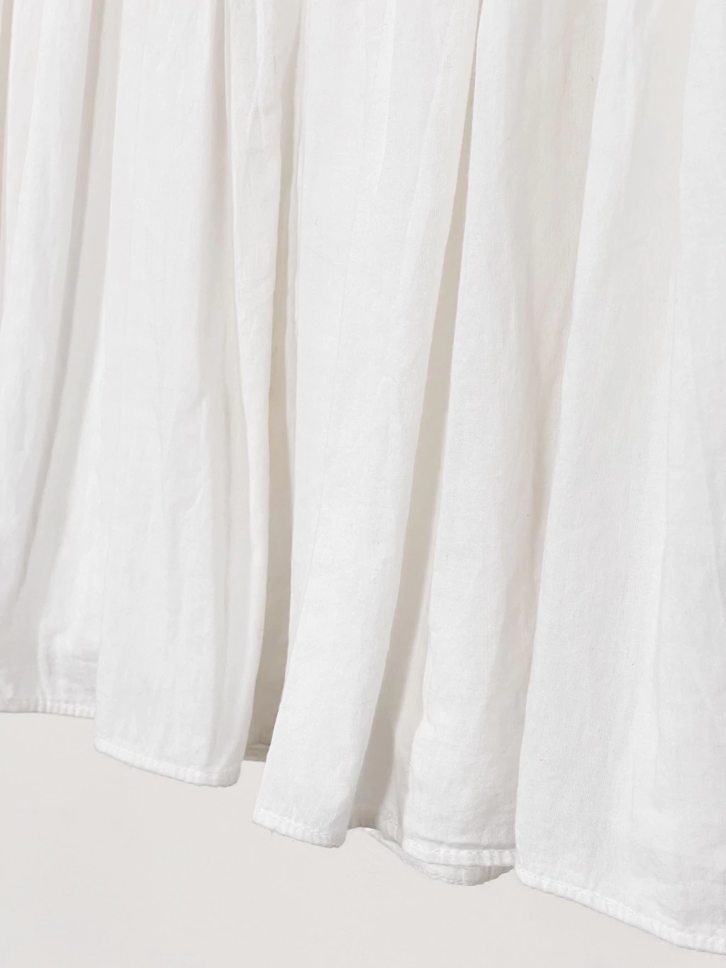 Pollera corta holgada de algodón. Tiro medio. Cintura con elástico. Cierre invisible en lateral. Costuras a tono. Medidas - Contorno de cintura: 74 cm. Contorno de cadera: 104 cm. Largo total: 40 cm.