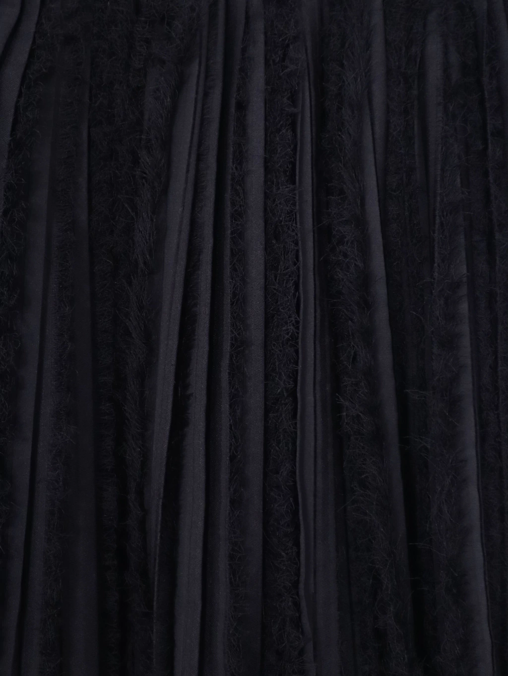 Pollera corta holgada. Plisado y desflecado. Tiro medio. Cintura con hebilla y botón. Cierre invisible en lateral. Costuras a tono. Medidas - Contorno de cintura: 64 cm. Contorno de cadera: 104 cm. Largo total: 48 cm.