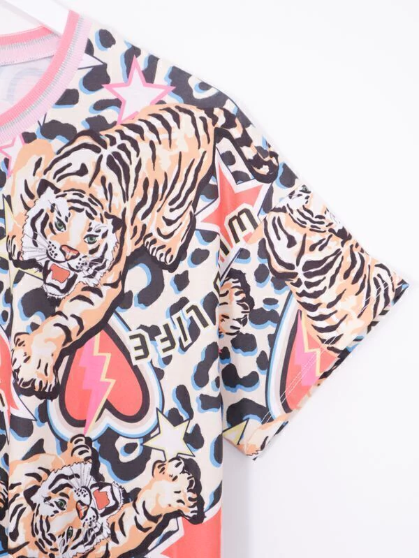 Remera oversize. Cuello redondo de ribb en tonos rosas con lurex plateado. Medidas - Ancho de hombros: 55 cm. Contorno de pecho: 116 cm. Largo total: 53 cm.