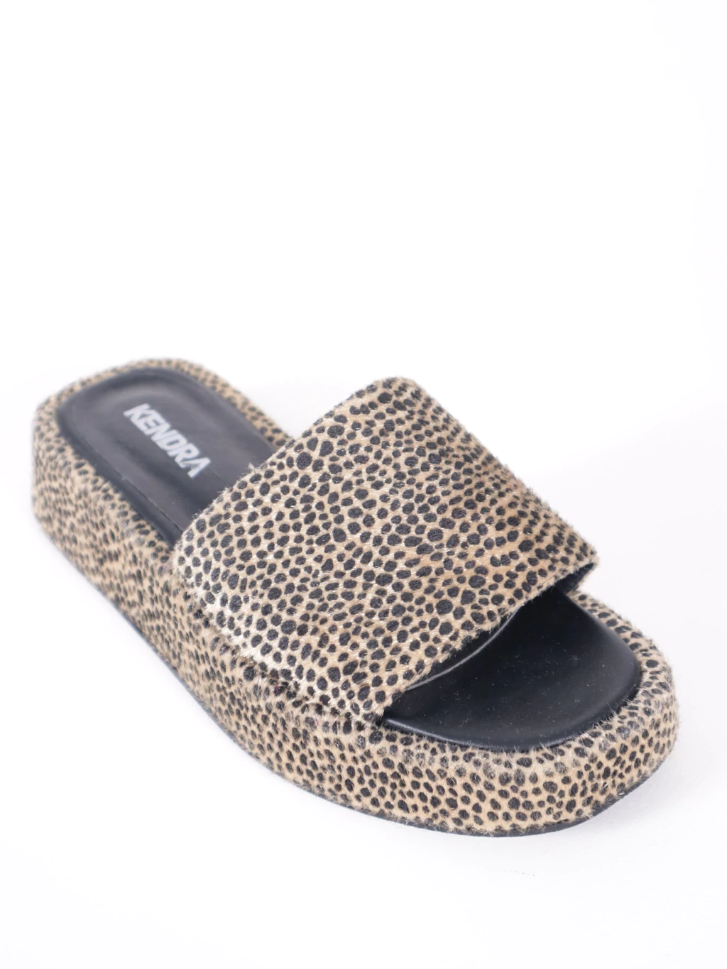 Sandalias de plataforma. Capellada con efecto pelo. Medidas - Largo de suela: 24,5 cm. Altura de plataforma: 4,5 cm.