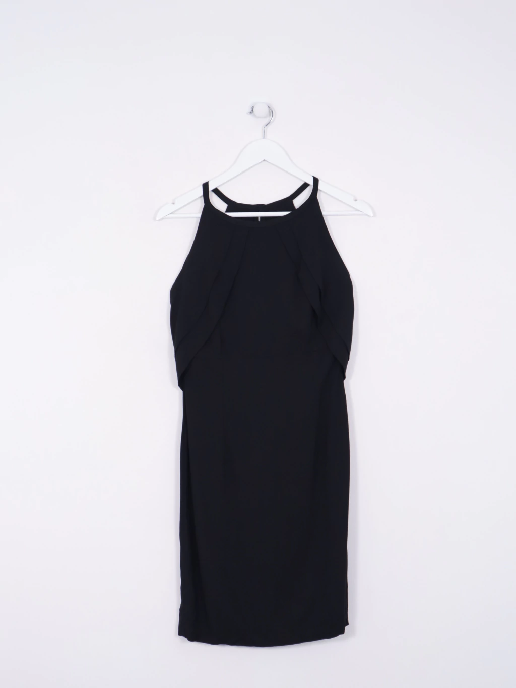 Vestido holgado liviano. Escote redondo. Recortes en hombros. Cierre invisible en lateral. Ojo de cerradura en espalda. Costuras a tono. Medidas - Ancho de hombros: 24 cm. Contorno de pecho: 76 cm. Contorno de cintura: 68 cm. Contorno de cadera: 86 cm. Largo total: 87 cm.